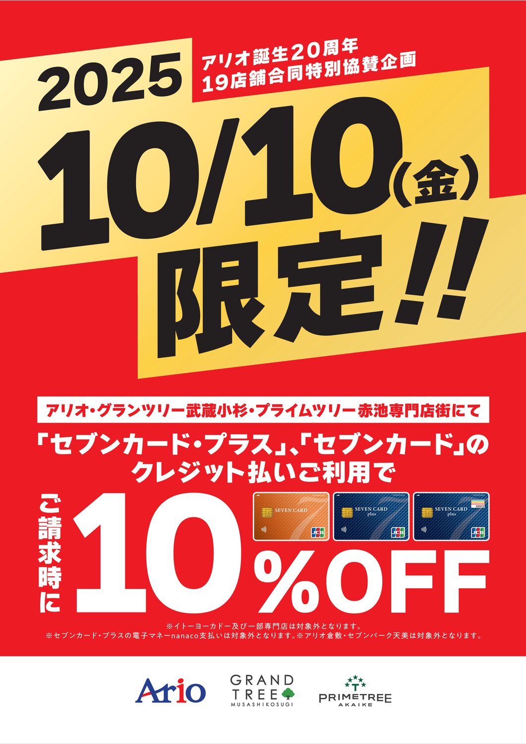 【10/10(金)限定】セブンカード/セブンカードプラス クレジット払いご請求時10%OFF
