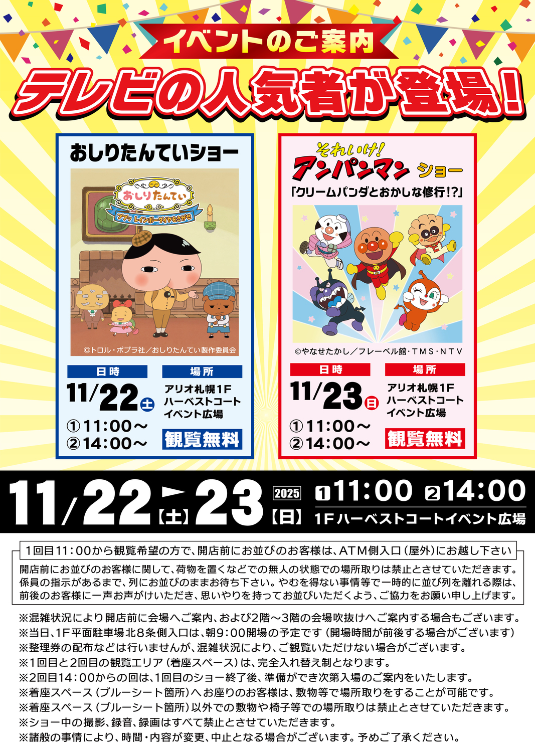 ※1回目11:00から観覧希望の方で、開店前にお並びのお客様は、ATM側入口(屋外)にお越しください。