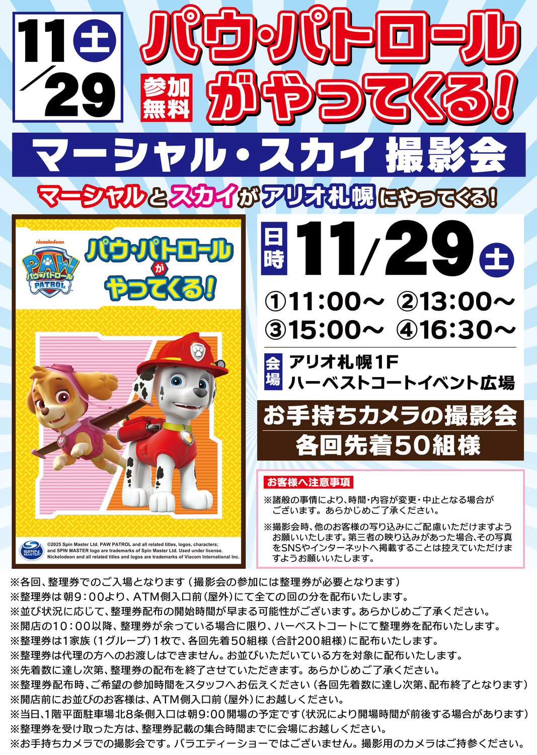 ■整理券配布場所/アリオ札幌1F ATM側入口(屋外)