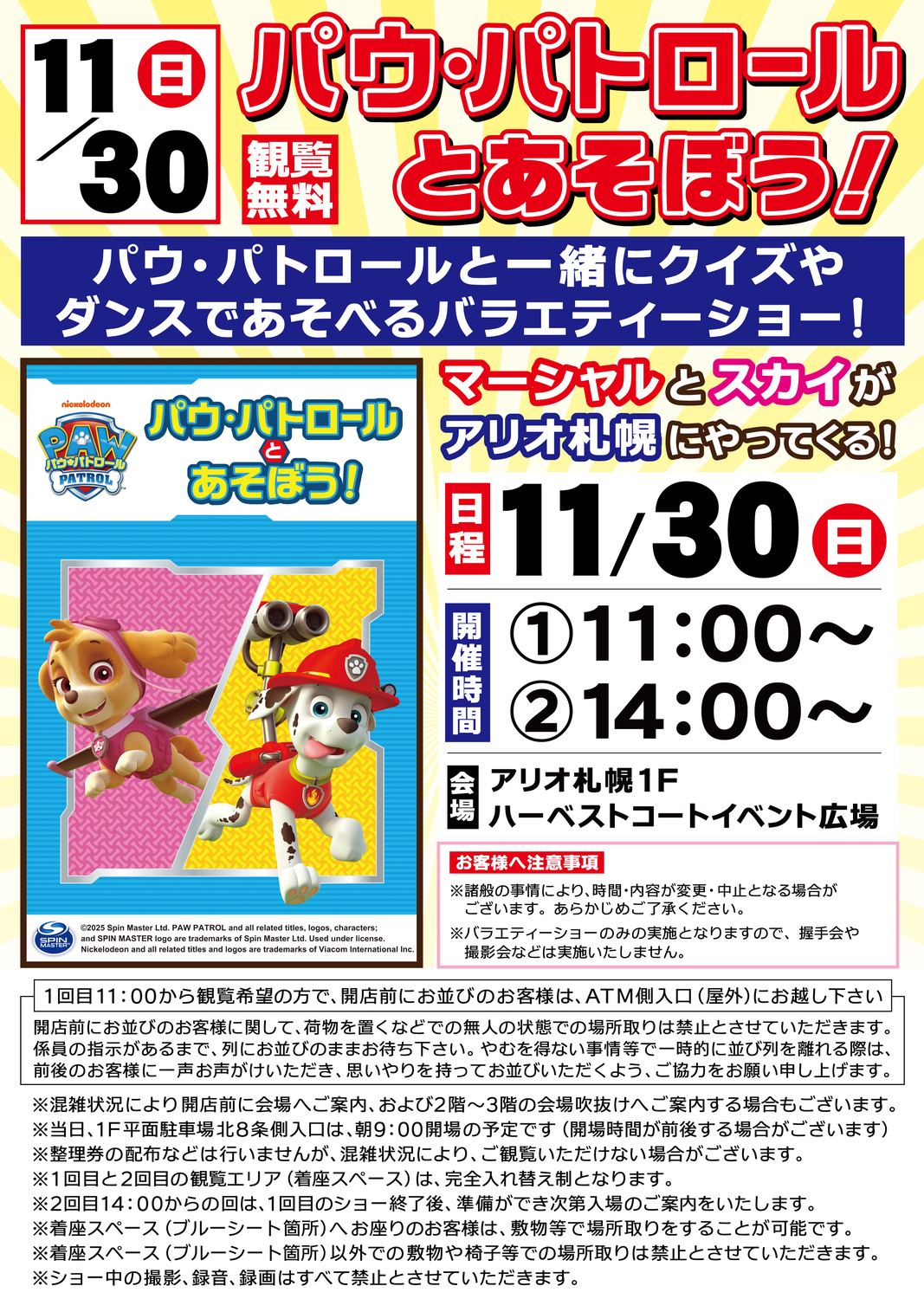※1回目11:00から観覧希望の方で、開店前にお並びのお客様は、ATM側入口(屋外)にお越しください。