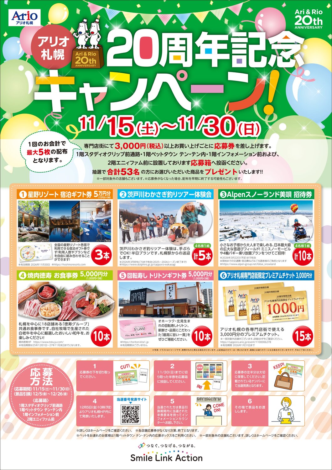 ※一部対象外店舗がございます。詳細はHPを確認ください。https://sapporo.ario.jp/event/1100006278/