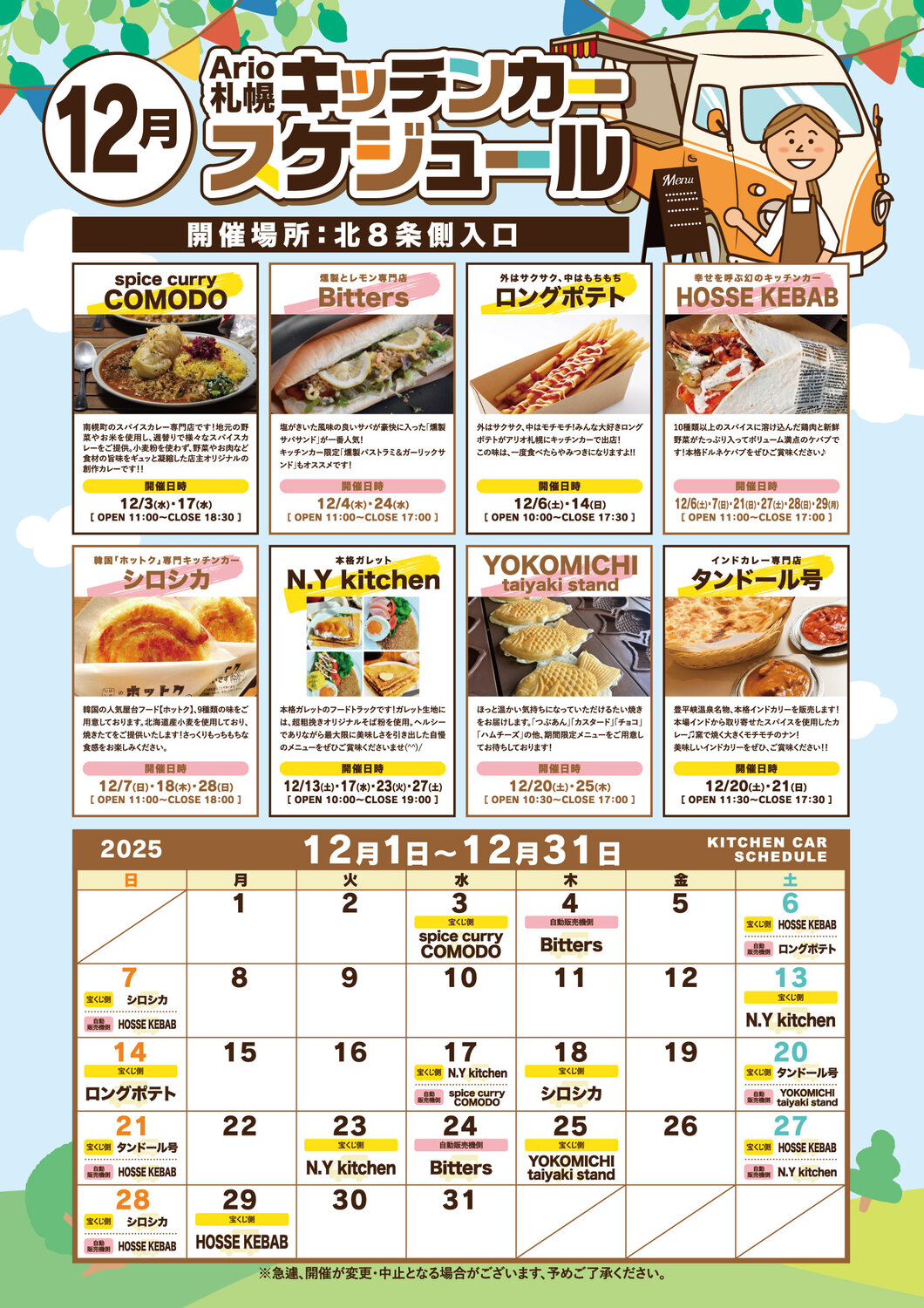 アリオ札幌 北8条側入口にキッチンカーが日替わりで登場!