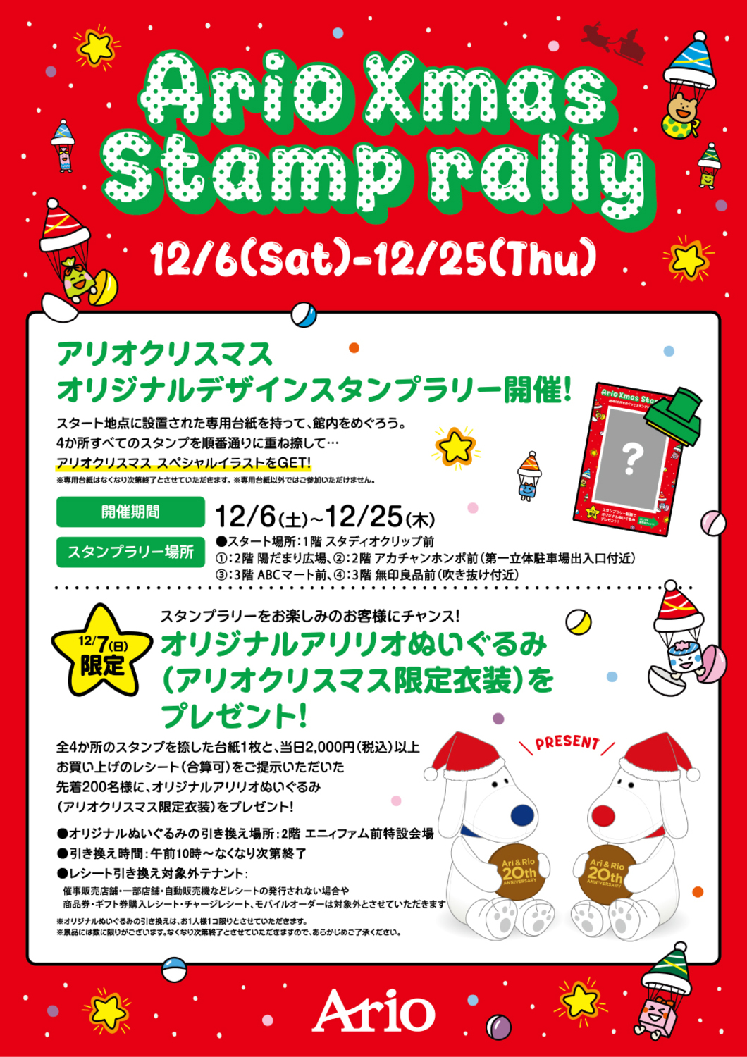 アリオクリスマス オリジナルデザインスタンプラリー開催!