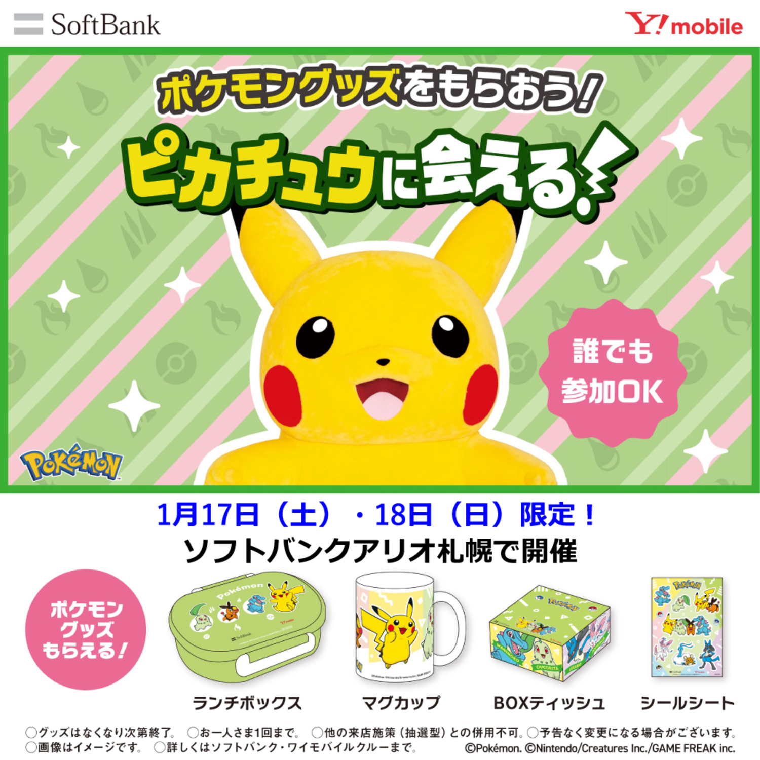 ※詳しくは会場スタッフまたは、ソフトバンクアリオ札幌店(011-723-7007)にお問い合わせください。