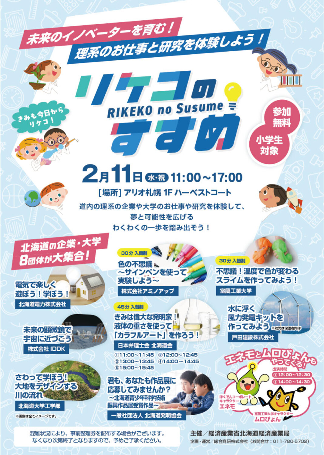 理系ってこんなに楽しい!道内の理系企業・大学のお仕事や研究を体験し、夢と可能性を広げるわくわくの一歩を踏み出そう!