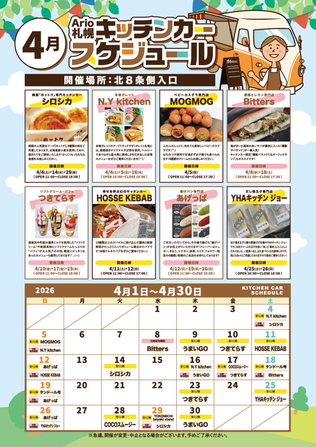 4月 キッチンカースケジュール