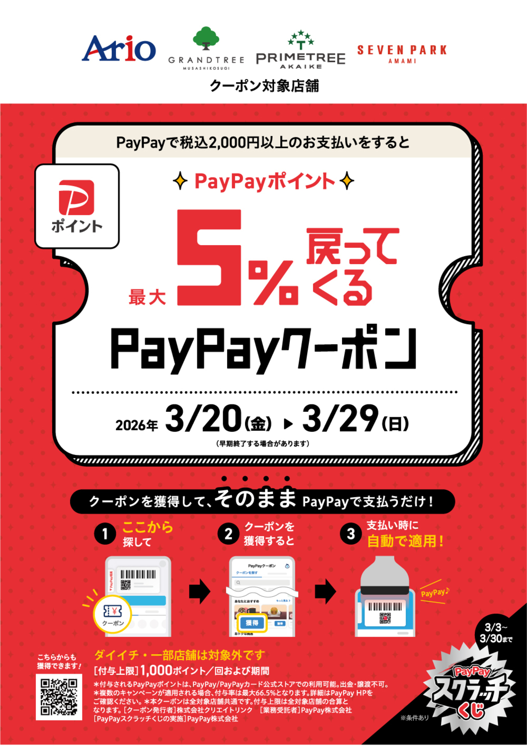 ※複数のキャンペーンが適用される場合、付与率は最大66.5%となります。詳細はPayPay アプリをご確認ください。