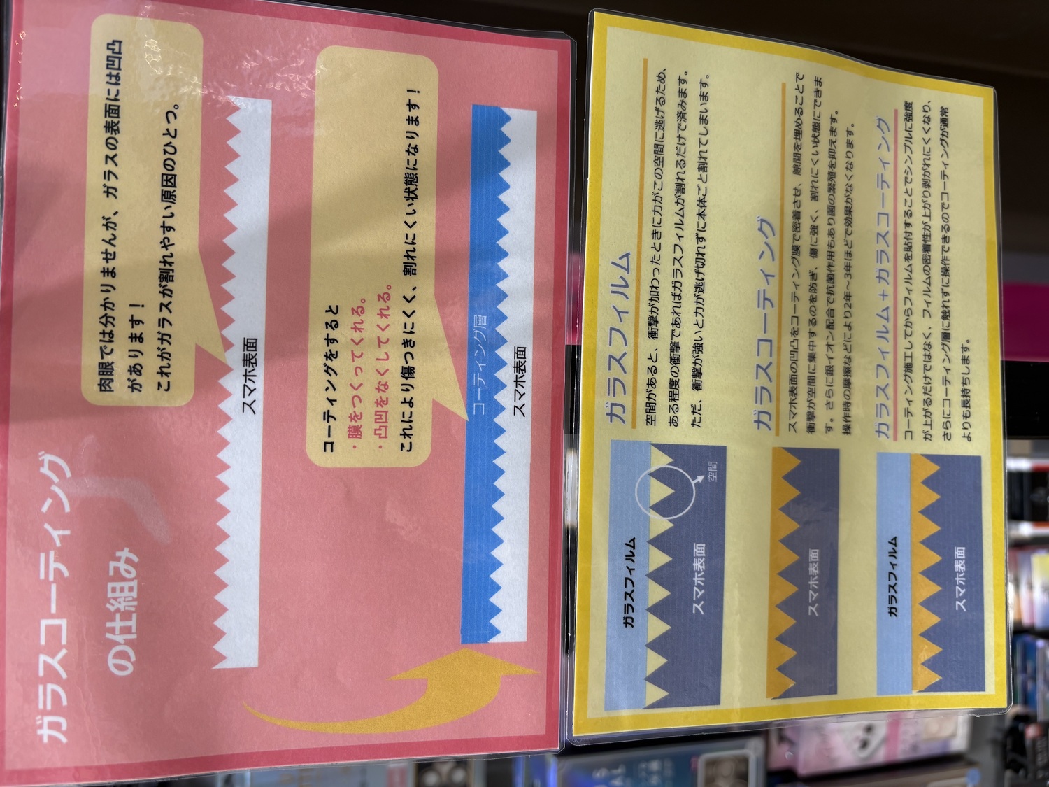 ガラスコーティングとは液化したガラスを塗り込むことで携帯や時計などの本体に強度がついてくれる施行です!