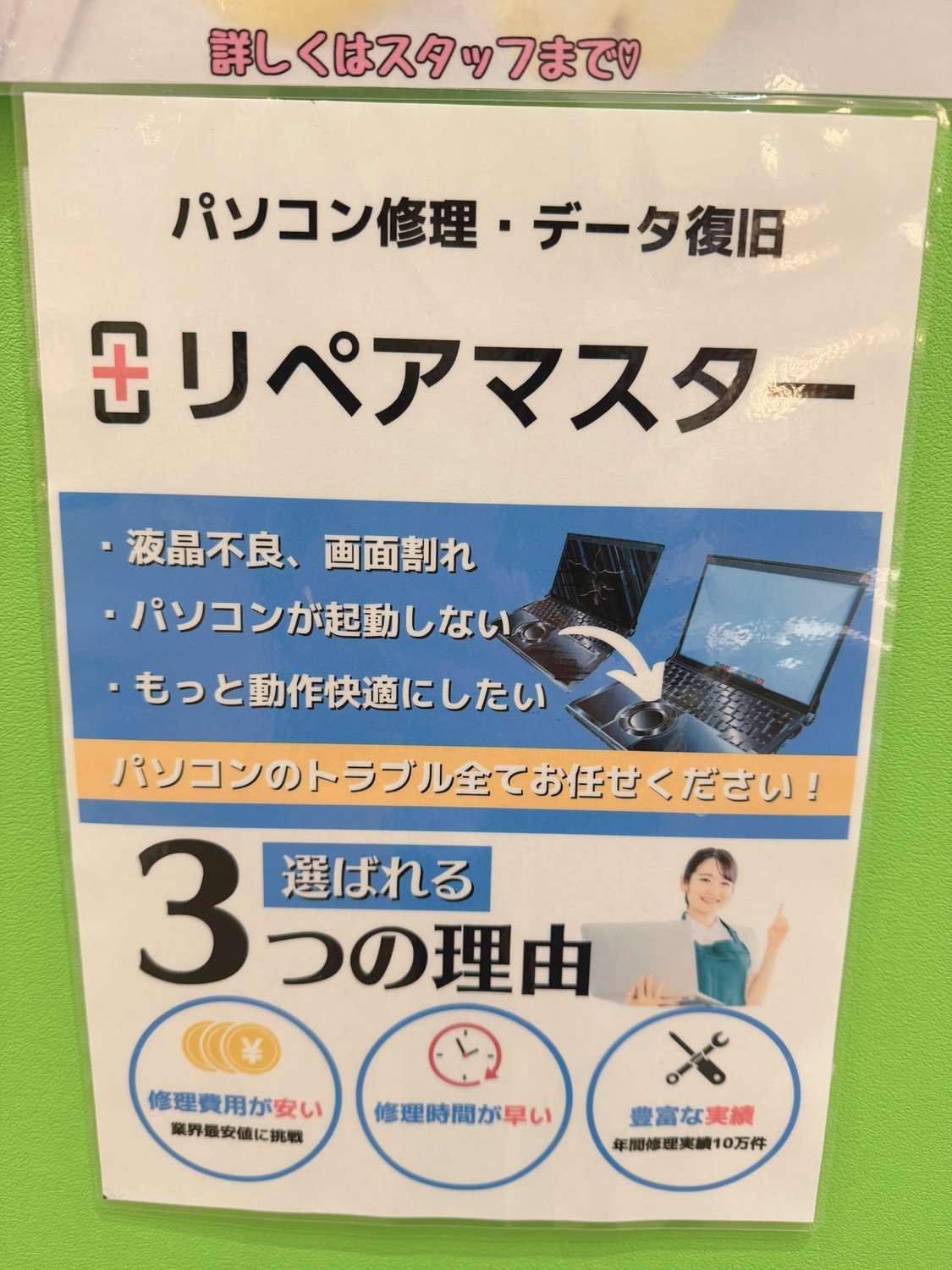 パソコンでお困りの際は、スタッフまでお気軽にどうぞ!