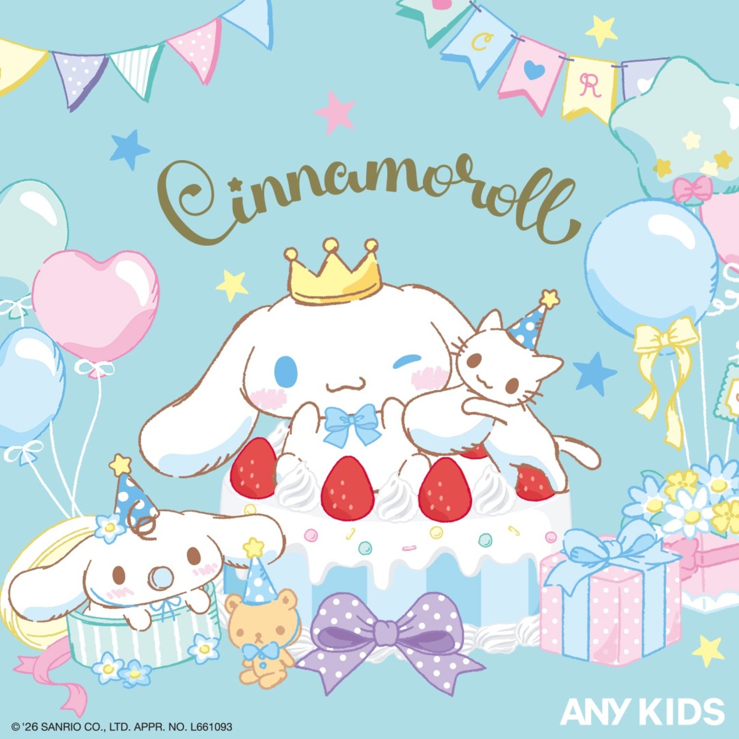 お誕生日モチーフのシナモロール×ANY KIDSの毎日をハッピーにしてくれる、スペシャルなコラボアイテムが登場