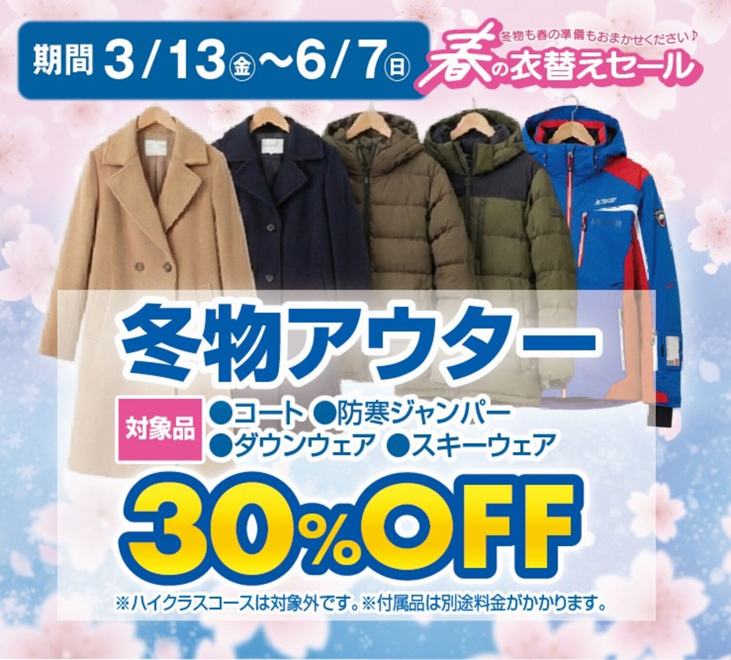 3月13日(金)から 6月7日(日)まで 冬物アウター30%オフ