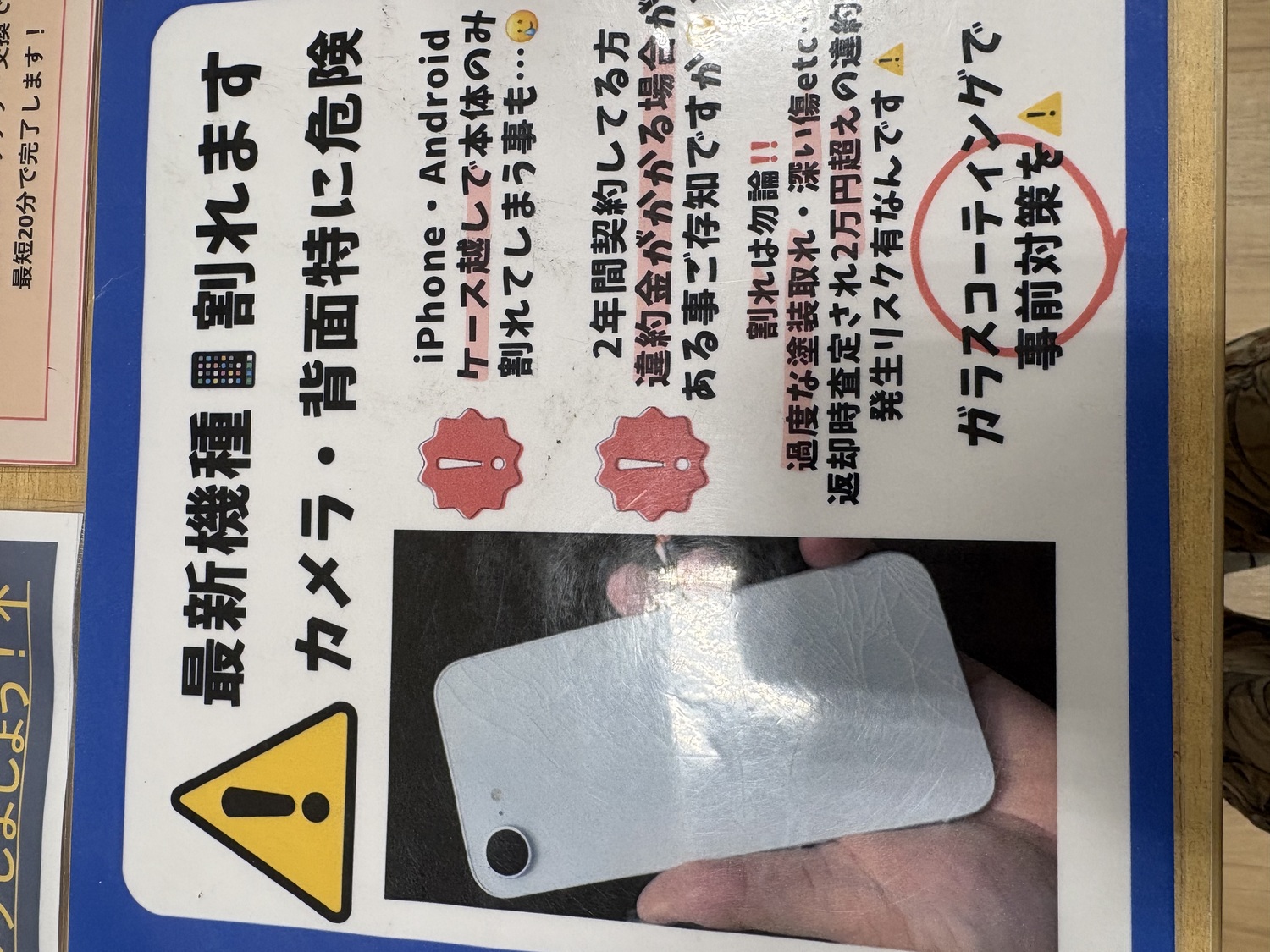最近のスマートフォンは表だけではなく裏側までかなり割れやすいです😱
